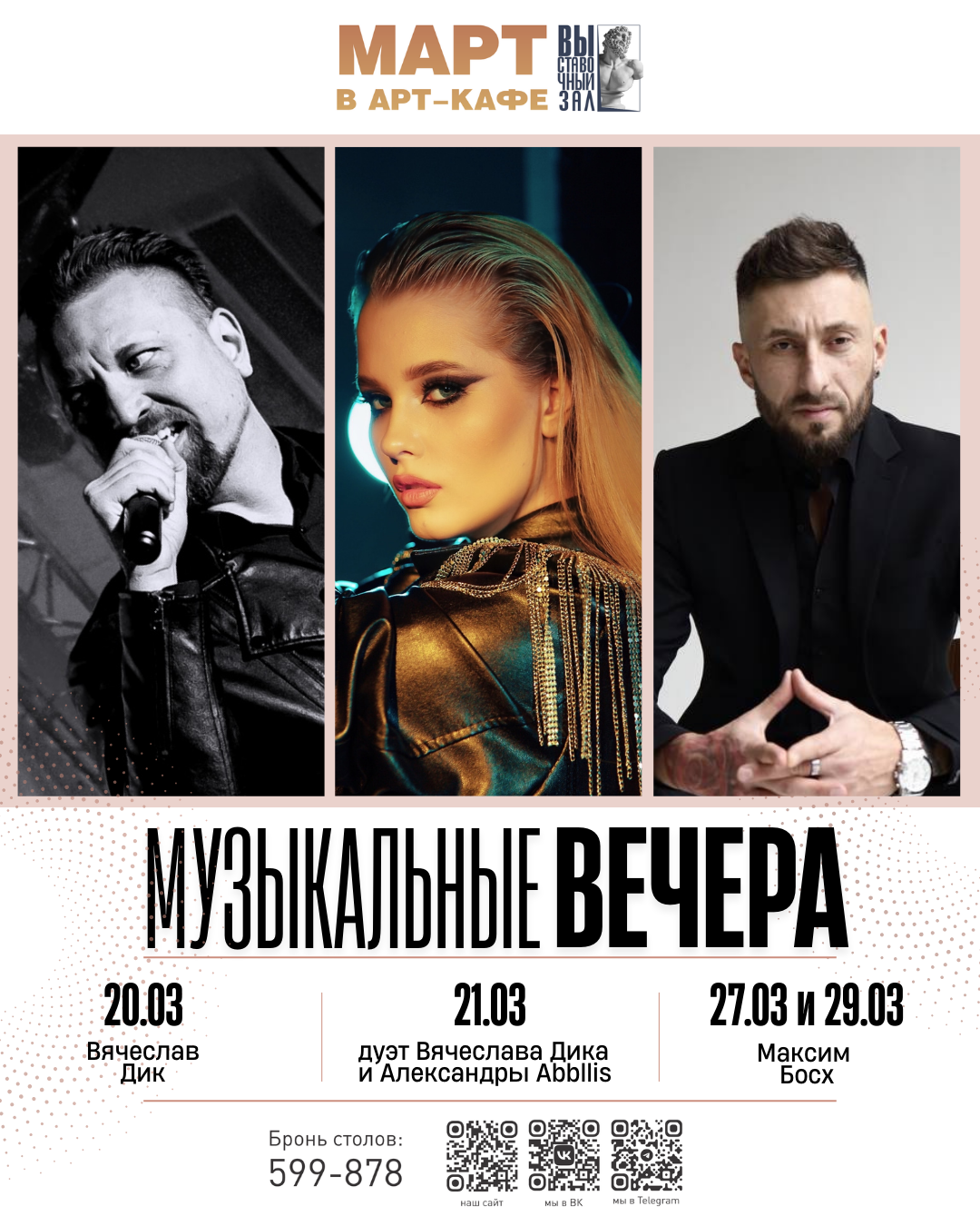Друзья, ловите настроение и сохраняйте даты! Вторая половина марта в нашем уютном арт-кафе будет наполнена живой музыкой, душевными вечерами и любимыми исполнителями.