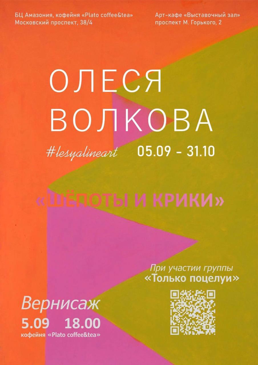5 сентября в 18:00 приглашаем вас на открытие выставки художницы Олеси Волковой «Шёпоты и крики» в кофейню “Plato”.